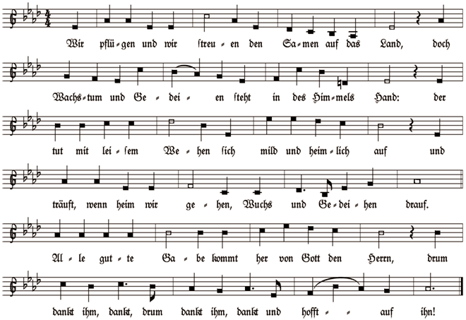 Auch dieses Lied ist eine Adaption einer populären Gesangbuchweise. Es handelt sich um Nr. 508 im Evangelischen Gesangbuch. Die Musik wird allgemein dem in Lüneburg geborenen Dirigenten und Komponisten Johann Abraham Peter Schulz (1747 – 1800) zugeschrieben. Er hat auch andere bekannte Lieder unseres Textdichters wie „Der Mond ist aufgegangen“ vertont. Der Texter des Originals, Matthias Claudius (1740 – 1815), war ein norddeutscher Journalist und Schriftsteller, der sich besonders mit eingängiger, dem Volkstone nahekommender Lyrik ein literarisches Denkmal errichtet hat. Es war nicht unsere Absicht, uns über das gelungene Lied lächerlich zu machen, sondern ausschließlich einige zeitgemäße Aspekte der Thematik näher zu beleuchten.